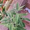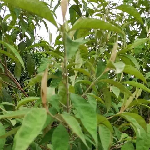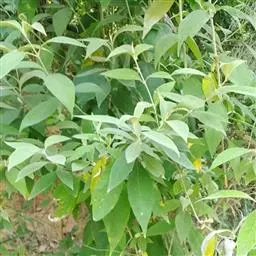 叶:叶对生,叶片纸质,长圆形或椭圆状披针形,长7-16厘米,宽2-6厘米,顶端渐尖,基部圆、宽楔形至楔形,有时下延至叶柄基部,边缘具有细锯齿,幼时被星状短绒毛,下面较密,老渐近无毛;侧脉每边15-20条,上面扁平,干后凹陷,下面凸起;叶柄较短或几无柄。