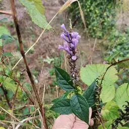 花:花较大,张开直径约2厘米,多朵组成腋上生和顶生的宽圆锥状聚伞花序,花序长7-23厘米,宽4-6厘米,被锈色星状柔毛;花序梗长1-5厘米;花梗短;苞片短小;小苞片线形,长5毫米;花萼钟状,长6-8毫米,宽4-8毫米,外面密被星状柔毛,内面无毛或有时有腺毛,花萼管长4-5毫米,花萼裂片卵状三角形,长和宽1.5-3毫米,全缘;花冠紫红色或深红色,长2.3-3厘米,花冠管圆筒状钟形,长17-21毫米,直径6-8毫米,喉部宽达9毫米,外面无毛,内面被柔毛,花冠裂片近圆形,长和宽5-10毫米,边缘浅波状;雄蕊着生于花冠管喉部,花丝短,花药长圆形,长2.5-5毫米,宽1.3-2毫米,顶端钝或突尖,基部心形;雌蕊长18-22毫米,子房卵形,约与花萼裂片等长,无毛或基部有时疏被星状毛,花柱丝状,柱头头状,2裂,绿色。
