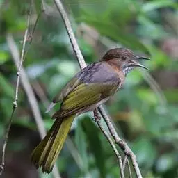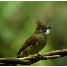 白喉冠鹎:体长20-25厘米。头顶红褐色,有长而细的羽冠、红褐色,头侧灰色。上体橄榄绿黄色,…
