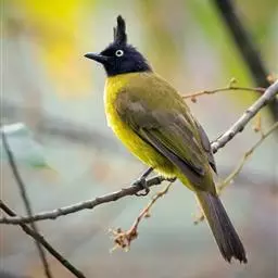 黑冠黄鹎:体长18-21厘米,是一种中等体型偏黄色鹎。整个头、颈、颏、喉黑色,头顶有显著直立的羽冠,…