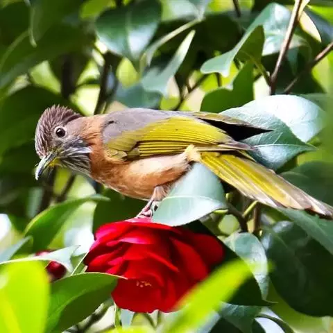 习性:常呈3-5只至10多只的小群活动,冬季有时亦集成20-30多只的大群。多在灌木和小树上活动,性活泼,不甚怕人,常在树枝间跳跃,或飞翔于相邻树木间,一般不做长距离飞行。善鸣叫,鸣声婉转多变。