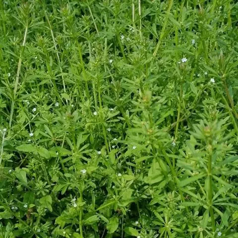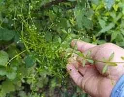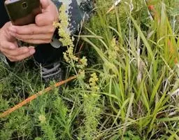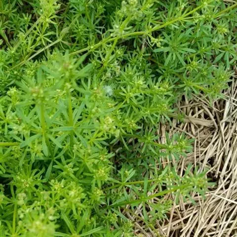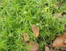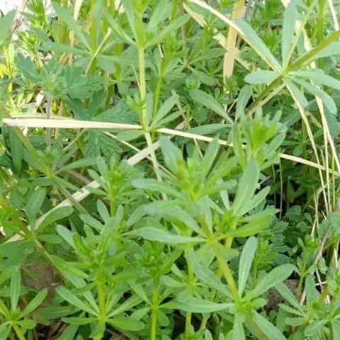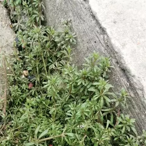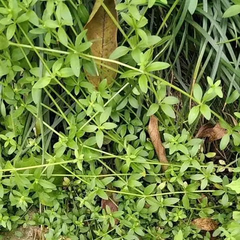 六叶葎 Ehrend. & Schönb.-Tem. ex R. R. Mill)是茜草科拉拉藤属的一年生草本。常直立,有时披散状,高10-60厘米左右,近基部分枝,有红色丝状的根;茎直立,具疏短毛或无毛;叶片薄,纸质或膜质,长圆状倒卵形、倒披针形、卵形或椭圆形顶端钝圆而具凸尖;聚伞花序顶生和生于上部叶腋,苞片常成对披针形,花冠白色或黄绿色,裂片卵形,雄蕊伸出;果近球形,单生或双生,密被钩毛;花期4-8月;果期5-9月。六叶葎分布于中国北、山西、陕西、甘肃、江苏、安徽、浙江、江西、河南、湖北等地,印度、巴基斯坦、尼泊尔、锡金、不丹、缅甸、日本、朝鲜、俄罗斯均有栽培。生于海拔920-3800米的山坡、沟边、河滩、草地的草丛或灌丛中及林下。六叶葎味甘,性平,具有清热解毒、利尿消肿的功效,可用于治疗尿路感染、赤白带下、痢疾、痛肿、跌打