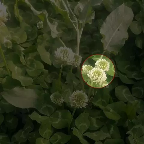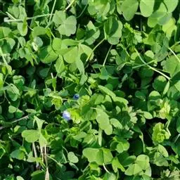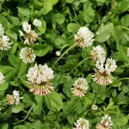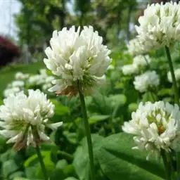 白车轴草,豆科车轴草属的多年生草本植物,茎贴地匍匐;叶柄直立,小叶心形,边缘具细齿,叶脉明显,…