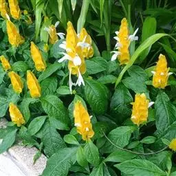 金苞花叶色亮绿,花序苞片排列紧密、黄色,花白色素雅,花型别致,整个花序形如金黄色的虾,花期长,观赏价值高。片植于花坛、花镜、公园入口等均能具有很好的观赏效果,盆栽用于布置室内客厅、书房、几案等处。 金苞花