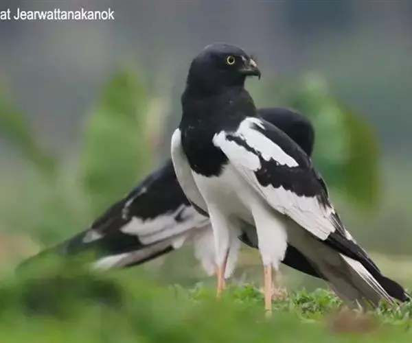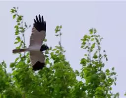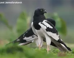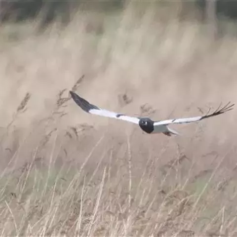 鹊鹞(学名:Circus melanoleucos):是一种中型猛禽。体重250-380克,体长42-48厘米。而两翼细长的鹞。体色比较独特,与其他鹞类不同,头部、颈部、背部和胸部均为黑色,尾上的覆羽为白色,尾羽为灰色,翅膀上有白斑,下胸部至尾下覆羽和腋羽为白色,站立时外形很像喜鹊,所以得名。虹膜黄色,嘴黑色或暗铅蓝灰色,下嘴基部黄绿色,蜡膜也为黄绿色,脚和趾黄色或橙黄色。