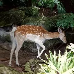 马鹿(学名:Cervus elaphus)是仅次于驼鹿的大型鹿类,共有10个亚种,因为体形似骏马而得名,身体呈深褐色,背部及两侧有一些白色斑点。雄性有角,一般分为6叉,最多8个叉,茸角的第二叉紧靠于眉叉。夏毛较短,没有绒毛,一般为赤褐色,背面较深,腹面较浅,故有“赤鹿”之称。