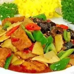 豆腐、五花肉、韩式泡菜、青椒、胡萝卜、葱、蒜、鸡精、盐、白糖、料酒