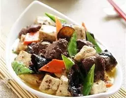 石锅豆腐是一道混搭的美味菜品,可根据不同食材的混搭做出不同的口味。