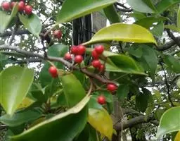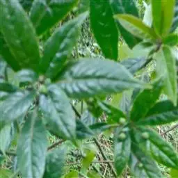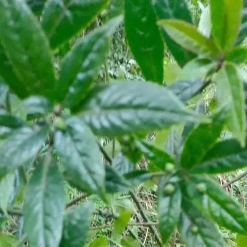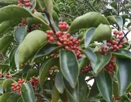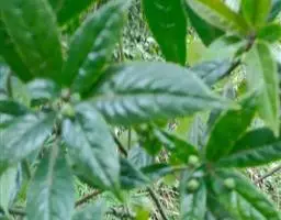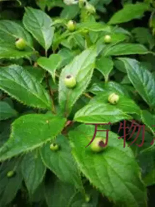 常绿小乔木或灌木,高3一4(一8)米。幼枝绿色,粗壮。叶革质,倒卵状长圆形、长圆形,稀倒披针形,长915厘米,宽3一5厘米,先端急尖或渐尖,具1 -1,5厘米尖尾,基部楔形,边缘除近基部1/3处全缘外,其余均具腺状锯齿,叶上面深绿色,干后呈橄榄色,背面淡绿色,干后有淡黄褐色斑纹,侧脉在幼叶上微显著,在老叶上面不显著,老叶背面微显著;叶柄长1一5厘米;托叶2片,线状披针形或钻形。雄花多数簇生,常5 -20(一30)枚,呈密伞花序,生于叶上面主脉的1/4-1/3处(稀生于近叶柄处),或生于幼枝上,雄花紫绿色,小花梗长3一7毫米,雌花1一4(一6)枚,呈伞形花序,小花梗长2一4毫米,花绿色,柱头3一4(一5)裂,子房3一4(一5)室。浆果状核果,成熟后黑色。种子3一4(一5)粒,椭圆形,长约9毫米。花期3一4月,果期7一8月。