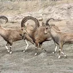 罕见北山羊现身甘肃山间嬉戏觅食。2014年5月,气温回升,甘肃马鬃山一带出现了成群的罕见国家一级保护动物北山羊嬉戏觅食。在方圆5平方公里的这一带山坡上就出现了三群,数量有近百只之多,实属罕见。
