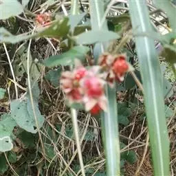 播种:采集的头年野生种子,种子千粒重8.4克,从中筛选出空种子,选择种粒相对饱满的种子,用浓度95%浓硫酸浸种5分钟、冷水浸种24小时、热水浸种5分种方式处理种子,处理后种子在砂基质中培养的萌发率最高,达60%。
