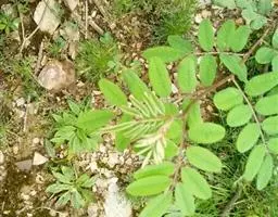 直立灌木,高40-100厘米。茎褐色,圆柱形,有皮孔,枝银灰色,被灰白色丁字毛。羽状复叶长2.5-5厘米;叶柄长达1厘米,叶轴上面有槽,与叶柄均被灰色平贴丁字毛;托叶三角形,长约1毫米,早落;小叶2-4对,对生,椭圆形,稍倒阔卵形,长5-1.5毫米,宽3-10毫米,先端钝圆,基部圆形,上面绿色,疏被丁字毛,下面苍绿色,丁字毛较粗;小叶柄长0.5毫米;小托叶与小叶柄近等长或不明显。