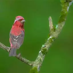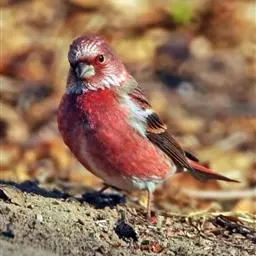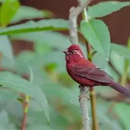 藏朱雀:全长约17-18厘米。雄鸟头部深红色具光辉,喉部暗红色具白色点斑;背部灰白色,各羽具玫瑰红…