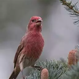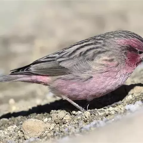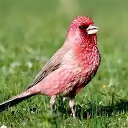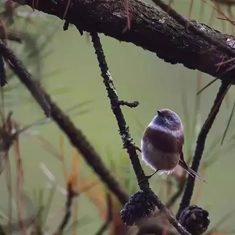 红眉朱雀:体长15厘米,是一种中等体型的朱雀。上体褐色斑驳,眉纹、脸颊、胸及腰淡紫粉,臀近白。…
