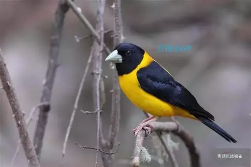 黄颈拟蜡嘴雀:小型鸟类,体长20-22厘米。嘴粗大,黑色。雄鸟整个头、颈、颏、喉和上胸辉黑色,…