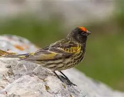 红额金翅雀:共有14个亚种。小型鸟类,体长12-14厘米。额、脸颊和颏朱红色,眼先和眼周黑色,在淡…