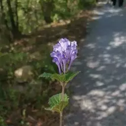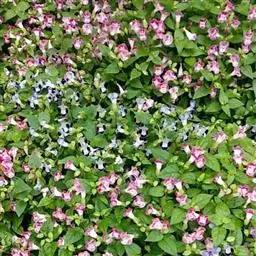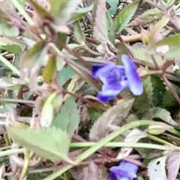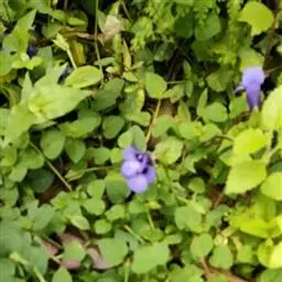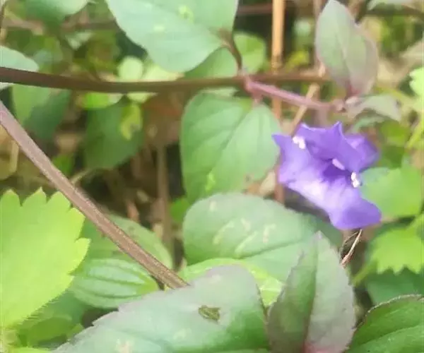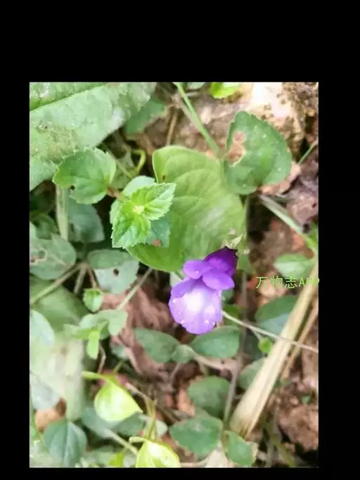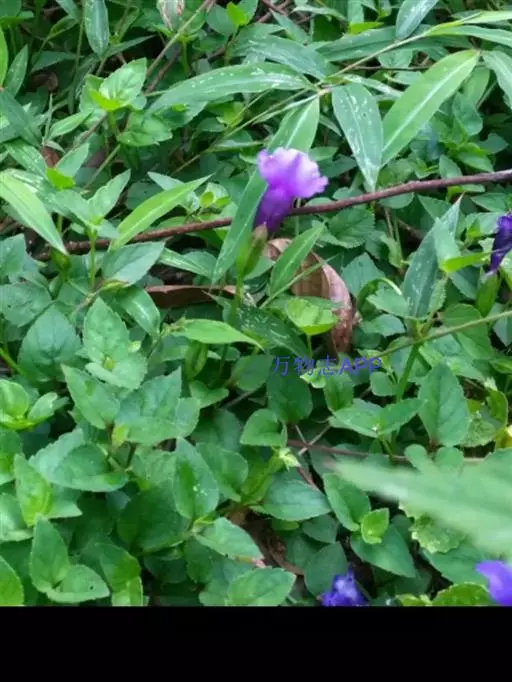 匍匐草本;茎具4棱,节上生根;分枝上升或直立。叶具长2-10毫米之柄;叶片三角状卵形或长卵形,稀卵圆形,长1-4厘米,宽0.8-2.5厘米,先端钝或急尖,基部宽楔形或近于截形,边缘具锯齿或具带短尖的圆锯齿,无毛或疏被柔毛。花具长2-3.5厘米之梗,果期梗长可达5厘米,单朵腋生或顶生,稀排成伞形花序;萼长1.2-1.5(1-7)厘米,果期长达2.3厘米,具5枚宽略超过1毫米之翅,基部下延;萼齿2枚,长三角形,果实成熟时裂成5枚小齿;花冠长2.5-3.9厘米,其超出萼齿部分长11-21毫米,蓝色或蓝紫色;前方一对花丝各具1枚长2-4毫米的线状附属物。花果期5-11月。 [1-2]