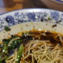【原料】:面条、五花肉、配菜、植物油、料酒、葱丝、姜末、白糖、黄酱、香油。