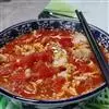 4.锅放火上,放少许油烧热。把鸡蛋放入锅内(一个即可)炒鸡蛋。放入切成几瓣的西红柿,滑锅(这也是为了有汤,而且清口)再放入发好的黄花和木耳。放少许盐。因为酱会比较咸,所以所有的菜都要淡。最后,下面条,面条煮好后,就可以拌酱和自由放喜欢的菜码了。