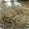 3.面条煮熟,捞出过一遍冷水,沥干水分,加入炸好的肉酱,加些黄瓜丝就可以吃了(也可以加些豆芽,随自己喜欢)。