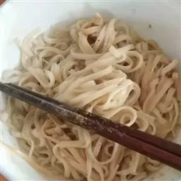 14.用筷子捞散。大火煮开。舀一小碗清水,继续再煮开,煮2-3分钟即可。喜欢吃软一点的可以多煮会儿;