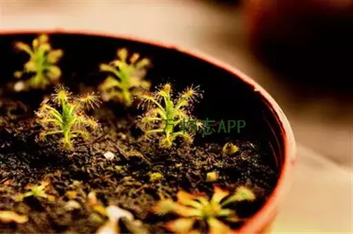 播种:大多数茅膏菜开花后会自然结出许多细小的种子,也有个别品种如叉叶茅膏菜等需异花授粉后才能结种,种子一般可保存三年左右。播种时可直接撒于洁净的基质表面(切勿盖土),保持高湿度和明亮的光线,温度保持在25度左右,约一个月发芽。温带地区的品种需要低温刺激才容易发芽,可在冬季、春季播种,或播种后冰箱冷藏一个月。