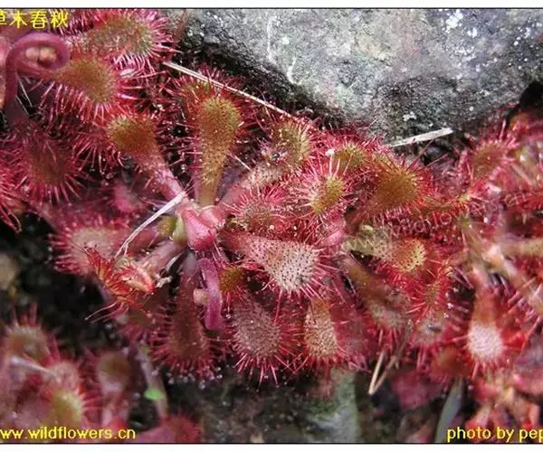 水份:使用低矿物质浓度的水源,生长季节可保持基质较高湿度,适合采用盆垫底部供水,植株不宜经常喷水,以免使腺毛的“露珠”难以形成。休眠期需干燥些,但不能干透,防止烂根。
