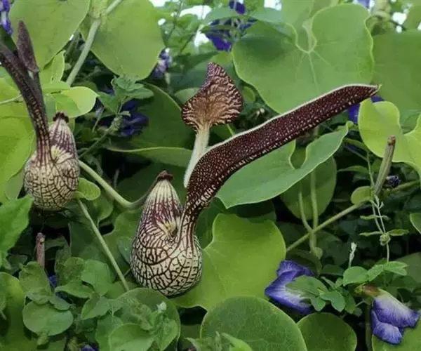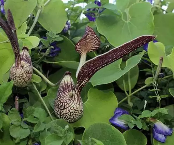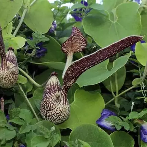 烟斗马兜铃为花姿奇特的藤本植物,适合小花棚、花架做攀援栽培或作绿篱,荫棚栽培时要数株合围,通过搭架造型也适合盆栽观赏。