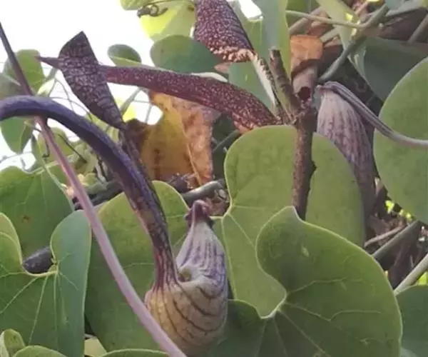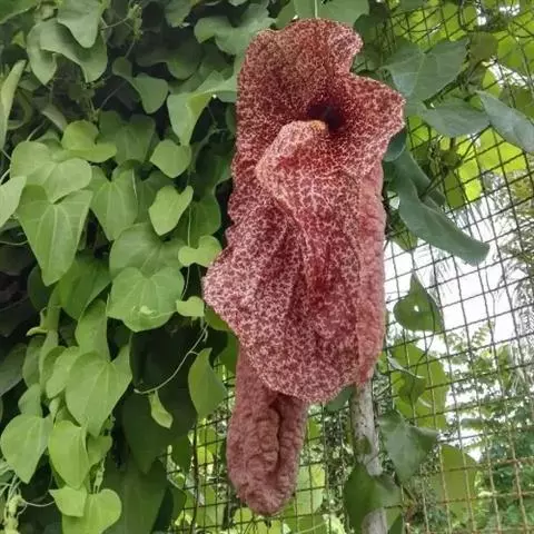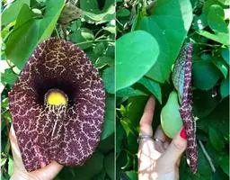 巨花马兜铃花朵的主要部分只有一片,看起来好像是一个巨大的、带有纹理的兜状物,而不像普通的花朵那样拥…