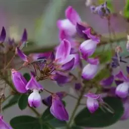 花冠红紫色,长10-15毫米旗瓣近圆形或稍长,先端圆,基部具明显的耳和瓣柄,翼瓣倒卵状长圆形,短于旗瓣和龙骨瓣,长7-8毫米,基部有耳和细长瓣柄,龙骨瓣比旗瓣稍长,在花盛开时明显长于旗瓣,基部有耳和细长瓣柄。