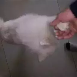尾巴:尾长,逐渐变细,夹在两后腿之间时贴于髋骨。当犬运动时,尾巴自然下垂,向上轻微弯曲,尾应不高过背部。