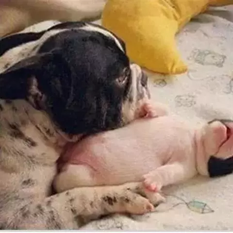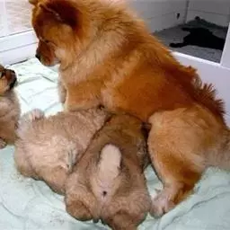 刚出生的仔犬非常柔弱,饲养人员要随时观察,防止母犬压伤仔犬。仔犬出生后就能自行吮奶,但需要将弱的小仔犬放在母犬胸前,帮助其吃奶。母犬有乳头 8个-10个,哺仔能力有限,大型母犬可哺育10只仔犬,若数量过多则应考虑寄养或人工哺喂,以保证仔犬健壮成长。
