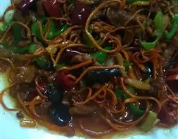 3.把面粉加水揉成面团(面和得稍硬一些,夏季可少放些水,其它季节可多放些水),用细刀(108齿的切片)切成细面条。