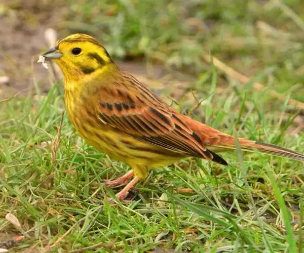 黄鹀(学名:Emberiza citrinella):属小型鸣禽。体重26.5-34克,体长160-200毫米。体羽似麻雀,头上、眉纹、眼后纹和颊部黄色;背栗灰,腰和尾上覆羽栗色;翼和尾羽暗褐,外侧两枚尾羽外翈具大型白斑;颏、喉、胸和腹鲜黄,体侧有锈栗色纵纹。喙为圆锥形,与雀科的鸟类相比较为细弱,上下喙边缘不紧密切合而微向内弯,因而切合线中略有缝隙。