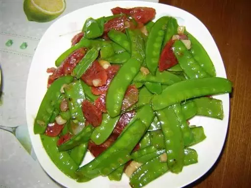 清炒荷兰豆(原料:荷兰豆、红椒、蒜头、盐)、蒜香荷兰豆(原料:荷兰豆、青椒、红椒、蒜、盐、鸡精)、腊肠烧荷兰豆(原料:腊肠、荷兰豆、姜、香芹、红尖椒、盐、鸡精、湿生粉、香油)、荷塘小炒(原料:莲藕、山药、荷兰豆、胡萝卜、水发木耳、盐、鸡精、香油、葱、姜)、培根炒荷兰豆(原料:荷兰豆、培根、蒜瓣、红椒、油、盐、鸡精)、蒜蓉荷兰豆(原料:荷兰豆、蒜、盐、猪油)、荷兰豆肉丝饭(原料:米饭、猪瘦肉、荷兰豆、桃、牛奶、炼乳、橄榄油、盐、味精、生抽、香油)、荷兰豆炒虾仁(原料:荷兰豆、虾仁、黑木耳、淀粉、盐、鸡精、料酒)、荷兰豆炒魔芋(原料:荷兰豆、魔芋、木耳、葱姜、盐、糖、蚝油、鸡精、香油)等。