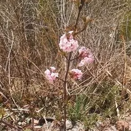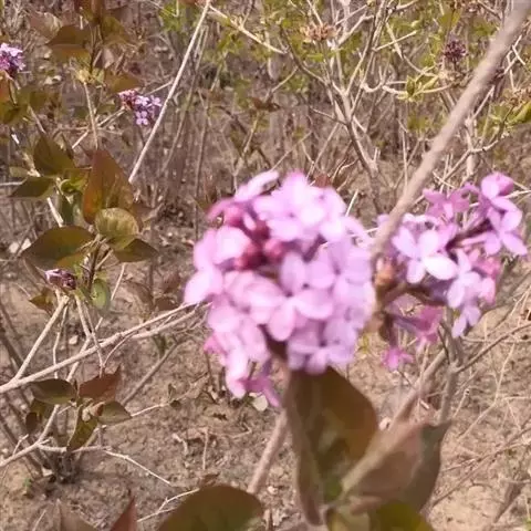 芫花是瑞香科瑞香属植物,别名:药鱼草、老鼠花、闹鱼花、头痛花、闷头花、头痛皮、石棉皮、泡米花、泥秋树、黄大戟、蜀桑、鱼毒,高0.3-1米,多分枝;树皮褐色,无毛;小枝圆柱形,细瘦,干燥后多具皱纹,幼枝黄绿色或紫褐色,密被淡黄色丝状柔毛,老枝紫褐色或紫红色,无毛。叶对生,稀互生,纸质,卵形或卵状披针形至椭圆状长圆形,先端急尖或短渐尖,基部宽楔形或钝圆形,边缘全缘,上面绿色,干燥后黑褐色,下面淡绿色,干燥后黄褐色,幼时密被绢状黄色柔毛,老时则仅叶脉基部散生绢状黄色柔毛,花柱短或无,柱头头状,橘红色。果实肉质,白色,椭圆形,包藏于宿存的花萼筒的下部,花期3-5月,果期6-7月。图片取自中国植物图库
