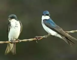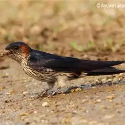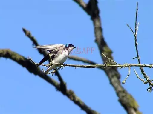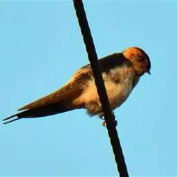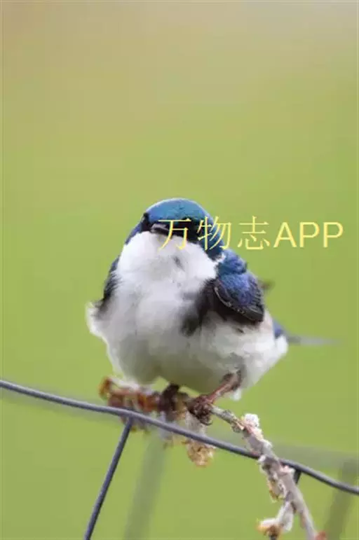 线尾燕,腹部接近纯白色,背部则为深紫色,头部的羽毛是栗色的。