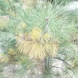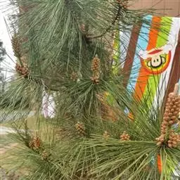 针叶2针一束,稀3针一束,长12-20厘米,细柔,微扭曲,两面有气孔线,边缘有细锯齿;横切面皮下层细胞单型,第一层连续排列,第二层由个别细胞断续排列而成,树脂道约4-8个,在背面边生,或腹面也有2个边生;叶鞘初呈褐色,后渐变成灰黑色,宿存。