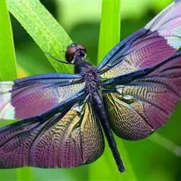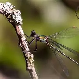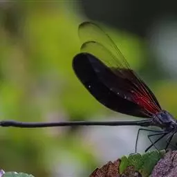 黑丽翅蜻属蜻科,是一类很原始的昆虫,河南、山东、安徽、江苏、福建、浙江、广东、广西等均有分布。面色浓,具毛,除前唇基色稍淡外,其余部分及头顶全为具金属光泽的蓝绿色或蓝褐色。后头褐色,后缘具毛。前胸黑色。合胸脊前方蓝绿色,具浓毛,合胸侧面墨绿色,具稀疏的毛。翅的大部分黑色,具蓝绿色闪光,小部分透明。后翅黑色;前翅由翅基到翅结、肘脉末端这一区域黑色,翅末端具1个小黑斑,剩余部分透明无色。足黑色。腹部及肛附器皆黑色 。