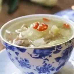 原料:冬瓜100克,瘦羊肉80克,枸杞3克,生姜10克,葱10克。