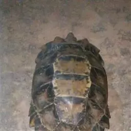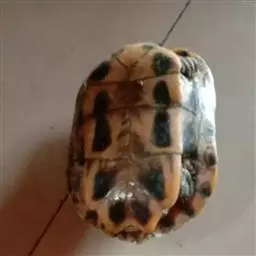 豹纹陆龟 豹纹陆龟背甲长可达68厘米,头颈黄棕色无斑,前额鳞1-2枚,顶鳞为数枚小鳞,背甲为深浅相套的杂色,腋盾2枚,胯盾1枚,与股盾相接 。