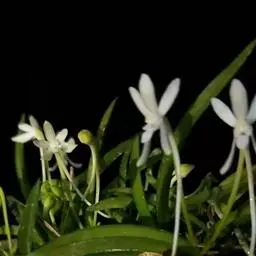 风兰 H.H.Hu):植株高8-10厘米。茎长1-4厘米,稍扁,被叶鞘所包。叶厚革质,狭长圆状镰刀形。…
