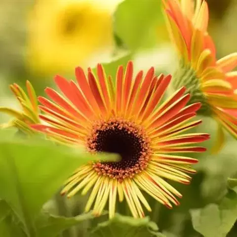 总苞片多层,叶质,覆瓦状排列,被长硬毛,夏季开花,花序边缘生中性的黄色舌状花,不结实。花序中部为两性管状花,棕色或紫色,能结实。矩卵形瘦果,果皮木质化,灰色或黑色,称葵花籽。 [1-2]