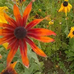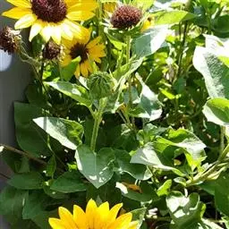 “Sonja”有着中等大小,4英寸的金橙色花,带着黑色的芯。它适合在小一点的花束中作为向日葵的点缀。“玩具熊”是另一种新奇的品种。它是一种矮小的品种,有着丰富的橙色花瓣,使得它有一种有些模糊的外表。“Floristan”是一种双色的品种,有着青铜色和红色的花朵,黄色的花尖和黑色的芯。“Prado Red”有着黑色的芯,周围包围着的是略带红的褐黄色花朵,直径约4英寸。其它带有这种丰富的、秋季的颜色有“秋季美”和“落日的余辉”。每个种类的向日葵代表的意义在不同的国家也有不同的寓意。