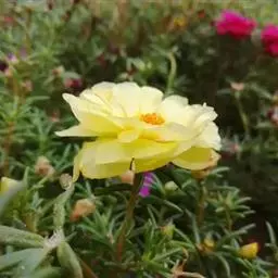 “月光明亮”柠檬黄的花瓣和黑褐色的蕊。