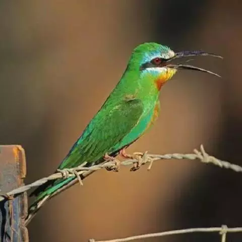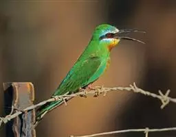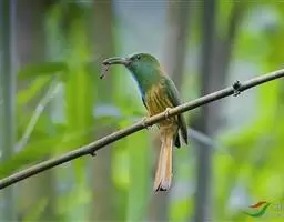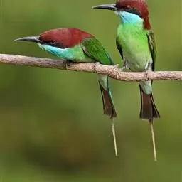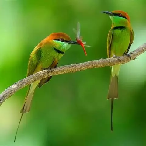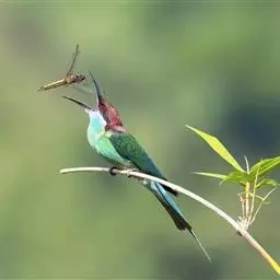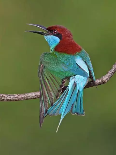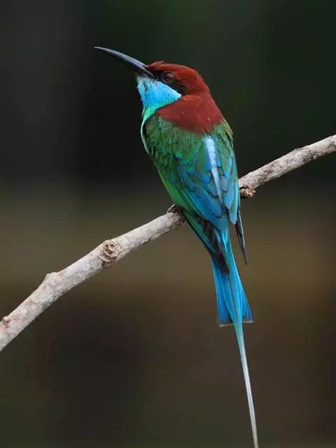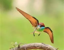 栗喉蜂虎是蜂虎科蜂虎属的鸟类。有热带鸟类羽毛艳丽的特征:喉部是栗红色的,黑色的过眼纹,…