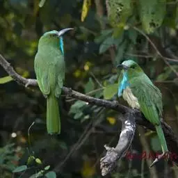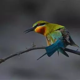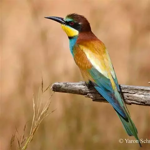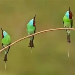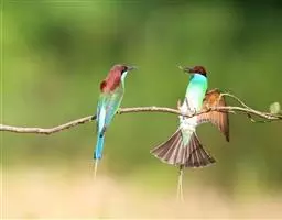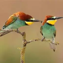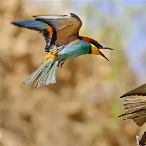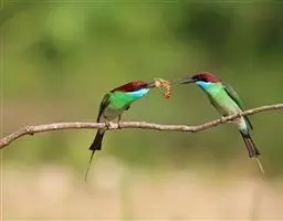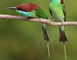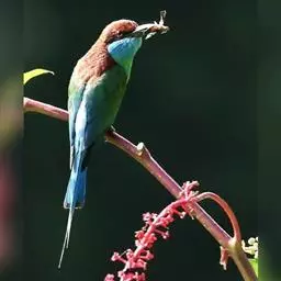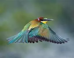 蓝颊蜂虎:是蜂虎科、蜂虎属的鸟类,共有2个亚种。体长27-33厘米,翼展46-49厘米,…