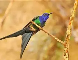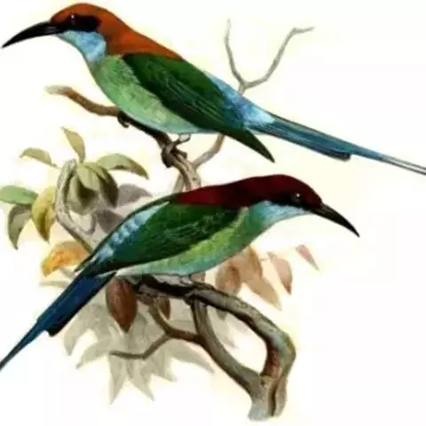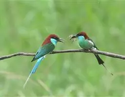 蓝喉蜂虎中型鸟类,体长26~28厘米。头顶至上背栗红色或巧克力色,过眼线黑色,腰和尾蓝色,翼蓝绿色,…