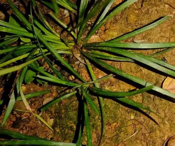 高20-30厘米。根茎较短,长5-10厘米,横走或斜伸,芳香,外皮淡黄色,节间长1-5毫米;根肉质,多数,长可达15厘米;须根密集。根茎上部多分枝,呈丛生状。叶基对折,两侧膜质叶鞘棕色,下部宽2-3毫米,上延至叶片中部以下,渐狭,脱落。叶片质地较厚,线形,绿色,长20-30厘米,极狭,宽不足6毫米,先端长渐尖,无中肋,平行脉多数。