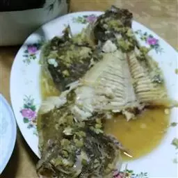 1.将鱼洗净,起出鱼肉,将骨斩件(留完整头骨尾骨),鱼骨加入鸡粉、生粉、姜末拌匀蒸熟排碟。